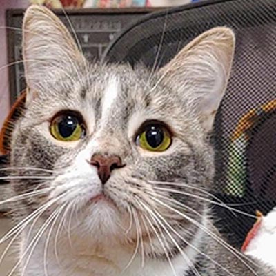 Tibby is our feisty little house cat. She has lived at Best Care since she was 8 weeks old. She came to us as a stray and had visible deformities in both of her rear legs. She still had limited use of her rear legs but was unable to walk normally. She has come so far since the first day she came to Best Care! Dr. Channell and Dr. Parenton diagnosed Tibby with tibial agenesis. This disorder is when the bones in an animal’s rear legs do not form or grow properly. In Tibby’s case, her tibia bones did not develop at all. But that does not stop her from jumping and racing around the hospital. She lives in Joanna’s office and has a stroller that she uses to visit with the technicians in our treatment area.